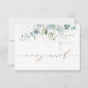 Tack vare det här kortet finns färgade vattenfärgseukalyptus, botanisk grönt och guld glitter löv med mycket skript på baksidan.