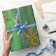Denna julomslutning har en papper utformning av grönt och guld, där mönster Juldekorationer om metallisk guld som stryper över gröntens övertoningsbakgrund. Det finns stora guld snöflingor, gyllene holly löv, lite guld Santa och hans själ som dras av renar, och ett mycket festligt hälsning om God jul.