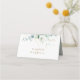 På det här bröllop-kortet finns färgade vattenfärgseukalyptus, botaniska gröntar och guld glitter löv med parets namn på baksidan.