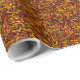 Bild med gulaktigt kurvor och levande röda fläckar som liknar guld och texturerade väggfärgsformer.