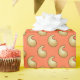 Paisley i en skuggad övertoning av ljusguld, konturerad i chokladbrun, på en baksida av mjuk korall orange