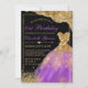 Guld- och lila glitterklänning 21-årsdag inbjudningar