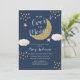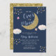 Guld och marinblå månbaby shower inbjudningar