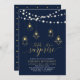 Högtidlighålla er speciella dag med den här snyggten, en modern inbjudan till pension-partiet. Den här sofistikerade designen har snyggt-typografi, vacker sträng-ljus och geometrisk ljusfixturgrafik i guld struktur. Du kan anpassa texten och bakgrunden till färg. Perfekt inbjudan för ett modernt firande för guld och marinblått pension.
