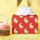 Paisley i en skuggad övertoning av ljusguld, konturerad i svart, på en djup kinesisk röd bakgrund