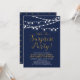 Fira din speciella dag med den här snyggtens jubileumsinbjudan! Den här designen har en snyggt med skripttypografi och ljussträngar på marin bakgrund. Perfekt för en trädgård party, party eller någon överraskning för party.