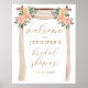 välkomstskyltelegantrustikvälkommen till vårblommigbröllsdusch skyltbröllopsfest välkomsthälsningakvarellguld och rosapersika