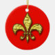 Fira fransk stil för jul med dessa original- Fleur de Lis Jul prydnadar. Prydnadarna presenterar en Guld- Fleur de Lis på en röd bakgrund. Denna prydnad är tillgänglig i olika färger på www.zazzle.com/enchantedbayou* besöker oss i dag för alla dina Cajun, Louisiana och New Orleans themed kort, inbjudningar och gåvor!