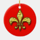 Guld och Röd Fleur de Lis Jul prydnad Julgransprydnad Keramik