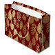 Ett mönster av löv som ritas i en mängd olika former och storlekar färgad i en vacker glansig guld-folie struktur. Mönster står på en djup röd bakgrund, perfekt för helgdagarna eller till och med för fallmånaderna! Du kan ändra bakgrunden till färg så att den blir spelar ingen roll som du vill, till och med lägga till ett namn eller en början!