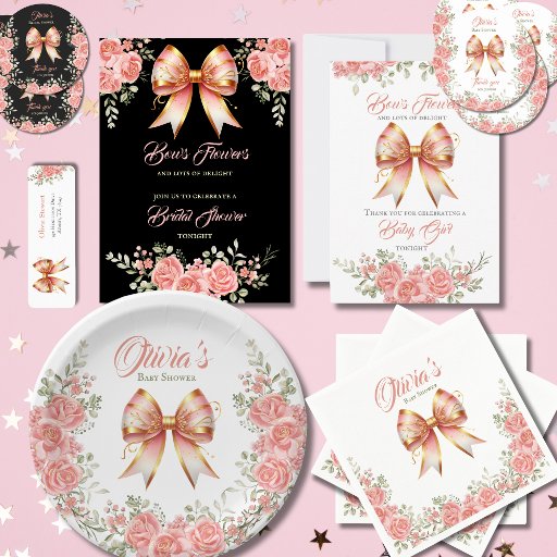 Guld och Rosa Blommigt Bow Baby Shower-meny