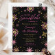 Denna eleganta och glamourösa inbjudan vykort har akvarell guld och rosa falska glitter snöflingor och gnistrande på en svart bakgrund. Det är perfekt för en vinter eller jul tema födelsedagsfest.