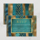 Guld och tealpenseldrag och konfekti-bröllop OSA-kort. En elegant som visar penseldrag i tårblått och guld och konetti. Er text ligger i ett ram med guld gräns. Välj det för ett vinterbröllop.