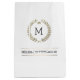 Silver och guld krans ram med anpassade monogram på vit bakgrund. Anpassadets födelsedagsfest presentväska.