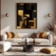 Den här abstrakten är en dialog mellan lyxen guld och skuggdjupet. Exakta geometrier - rektanglar, trianglar, kurvor - intertwine som musik noter, skapar en visuell rytm som inbjudan utforskar varje lagrar. Golden Hues utstrålar sofistikering, medan intensiv tillför drama, vilket leder till ett biet som balanserar modernitet och tidlöshet. Idealisk för rum som vill ha elegans utan att offra personlighet.