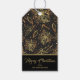 Gula julstjärnor, julblad och bär på svart bakgrund, dessa presentkort har din hälsning och namn på framsidan i chic guld bokstäver och utrymme att skriva vem presenten är till på baksidan. MATCHANDE föremål i vår kollektion.