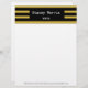 Lägg till ditt företag namn, ditt namn och din logotyp samt företagsinformation om den moderna designen guld och svart rand mönster.