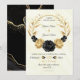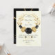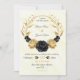 guld och svarta blommor, botaniskt krans bröllop inbjudningar