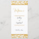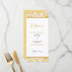 Ett menykort för Elegant Guld och svart bröllopsmottagning designat med färgad från snyggt guld på vit bakgrund med svart text, inklusive: Namn och Bröllop. På den omvända sidan finns texten Meny, Appetzer, Entre och Dessert Selections på motsvarande bakgrund för färgaden guld. Om du vill anpassa dig infogar du bara dina uppgifter i vår enkla mall och ersätter exempeltexten. Se till att hela samlingen för Guld och Svarta Eleganten Stil Bröllop visas.