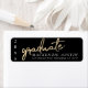 Trendig studenten överlägg med accenter i en sofistikerad svart- och faux metallisk champagne guld palett. Konstruktionen har en chic-handskriven sepia-penselmansmanuset "student" på en svart bakgrund tillsammans med gradens namn och studenten. Underbart sätt att hedra din grundläggande mitten-skola, gymnasieskola eller högskoleexamen! #Classof2019 #bundet