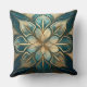 Guld och Teal Blommigt Mandala - sofistikerad desi Kudde
