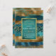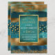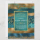 Guld och tealpenseldrag och konetti bröllop inbjudningskort för möhippan. Den här eleganten har penselfärgade linjer i teal och guld och konfekti. Er text står i ett tårblått ram med guld gräns. Det är idealiskt för ett vinterbröllop.