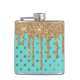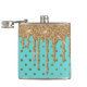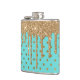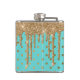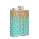 Glitzy-drickskolv, med grafik av guld-glitterfärg som droppar ner en turkos och guld polka punktbakgrund. Anpassa för att lägga till egen text. Underbar presentidé för bröllop, födelsedagar och andra speciella tillfällen.