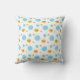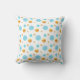 Vacker dekorativ kudde med guld och turkosa prickar på vit bakgrund.
