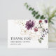 Elegant arrangemang av vinburgunderblommor med guldkonturblommor. Tack-kort för bröllopsduschen.