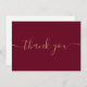 Enkel modern elegant guldbokstav på en vinröd bakgrund tackkort. Du kan anpassa med ditt eget tackmeddelande på baksidan eller om du hellre vill lägga till ditt eget handskrivna meddelande, helt enkelt radera texten. Ett perfekt sätt att säga tack! Designad av Thisisnotme©