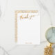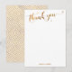 Här är ett festligt val för era brölloppskort med tackmeddelande. Över en vit bakgrund (färgen kan ändras till vad du vill,) har jag placerat en typografisk grafik som läser "tack" med en utsmyckad typsnittsstil dekorerad med hjärtan. Grafiken överlagrades sedan med en slät falsk guld effekt. En motsvarande gyllene nyans användes för att återge ditt namn eller personliga meddelande längst ner. Alla lager är upplåsta för att möjliggöra all positionering och storlekskontroll du önskar. Baksidan täcktes av ett festligt mönster av kapslade falska guld-fyrkanter roterade diagonalt.