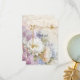 En mycket vacker vit Dahlia med accenter i lila och blå tack-kort för bröllop.