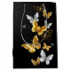Guld, smycken och vita fjärilar på svart bakgrund. Golden Butterfly.