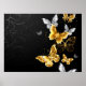 Guld, smycken och vita fjärilar på svart bakgrund. Golden Butterfly.