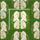 Vackra mönster har parade guld och vita keltiska fågelsymboler på gröntens bakgrund.
