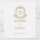 Guld och Vita Royalet Monogram Vapensköld Bröllop Vinflaska Etikett