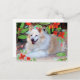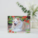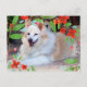 Det här vykortet innehåller ett av fotografierna på min vita och guld Gräns Collie-blandning hund. Jag lade till en övertäckning av rödblommor i vattenfärg som gräns. Alla som kärlek hundar tycker om att få det här vykortet.