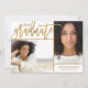 Prisvärd personlig för studenten-annonskort i anpassningsbar med dina foton och din text. Den här eleganten har en modern design med ett modernt skriptteckensnitt med faux guld-folie. Lägg till två äldre foton tillsammans med din grad-år, namn och skolinformation eller annan anpassningsbar. Använda verktygen om du vill välja valfri bakgrund färg, lägga till fler foton eller redigera texten typsnitt och färger. Baksidan har en guld-folie rand mönster eller använda för ytterligare text och bilder. Den här chicen är en perfekt för skolavhopp, högskole- eller högskolestudier i mitten!