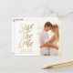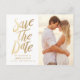 Fullständigt vykort för anpassade spara datum meddelande med faux guld-folie. Det här fotot sparar datumet för vykortet som magnet och platta kort. Ett perfekt sätt att meddela din bröllop dejt till din familj och dina vänner.