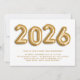 Den roliga och festliga nyårsaftonpartyinbjudan som presenterar fauxguld, omkullkastar mylar ballonger och randmönster med fyrverkerimönster för baksidaen.