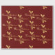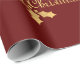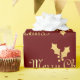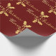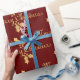 Den roliga beställnings- röda julgåvan som slår in papper med nätt guld, omkullkastar lookjärneklöv och bär