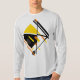 Geometriska former och linjer finns i gult guld, ljus orange och svart som bildar ett modernt geometriskt diamantmotiv för konsten, vilket framkallar en contemporary på arbetsyta.. Bild här på en "ash"-tröja med lång sleeve, med annat stilar och färg tillgängligt. Med inspiration från modern abstrakt, samt popkonst och MCM stil, ger designen en ljus och livlig konstnärlig kvalitet för ett mångsidigt och polerat tillägg till din avslappnad och vardagliga bära (oavsett om det är hemma, socialiserat med vänner, sport eller om man springer omkring). Tröskans design som "bärkraftig konst" ger också en känsla av ditt individualiserade stil, vilket bidrar till känslan av att vara "tillsammans" och kreativ i dina personliga val.