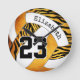 Den här vilden har zebra ränder-flickans volleyball-väggklocka ett fet zebra ränder accent mönster på fyra av volleybollpanelerna - zebra ränder-panelerna plus tre andra paneler har en orange/guld-bakgrund som står i kontrast till de återstående vita volleybollpanelerna - anpassa med namn och jersey-nummer - efter katz_d_zynes