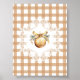 Den kommande julen poster med en gyllene ornament som är bunden till ett band, mot en varm gingham-bakgrund med snöre-stil ram. En mysigt helgdag-inspirerad väggutskrift.