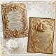 Lägg till en sista touch i din brölloppssvit med det guldbelagda inveckade barocka storhetstidens tulipflorala motivfyllda kuvertkort, inspirerat av klassisk europeisk konst och arkitektur. Rika rullande mönster, symmetriska blomsterdetaljer och ömt lagrade accenter frammanar praktfullheten i historiska balsalar och formella salonger. Den gyllene konstnärliga verket förmedlar omedelbart prestige och firande och sätter en förfinad ton som passar vackert med traditionella, lyxiga och formella bröllopsteman, en sammanhängande brölloppssvit med information om bröllopsplats, boende, transport och ceremoni. Designen har en guldbelagd invecklad ram och en tulpanblomma på baksidan i präglad stil