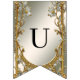 Vita Guld Ornate White Blommigt Bunting Flaggor