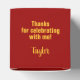 KLASSIFICERING i fet gult guld med text runt framsidan av dessa kardinalröda 2-tums fyrkantiga studentfester med ditt namn och tack för ditt meddelande på toppen. Fyll med behandlingar som ett tack till gästerna vid din studentfest. MATCHING-objekt och mer färg i vår samling.
