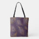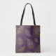 Guld påfågelfjäder, violett bakgrund. tygkasse