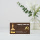 Ett träskydd har en guld-borste i kreativ. Borsten till borsten är i själva verket en silhuetdesign som bygger guld. Nära kortets överkant ljuger företaget namn "HEM REPAIRS" och ett alternativ för slogan som du kan ändra. Detta följs av en logotyp i guld-hammaren som du kan använda med kontaktuppgifterna nära basen. På andra sidan används samma trätema för trävirke. Överst finns logotypen i guld, följt av ditt prestigefyllda namn, kontaktuppgifter och ett sloganalternativ för att publicera dina tjänster. Ett kort för underbart kreativ för alla till använda, särskilt byggnad, handyman, träverk och målarteman. #carpenter #woodworking #carpentry #building #entreprenör #handyman #remodeling #buildingentreprenader #homerepair #homeBuilder #zazzlemade