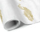 Bygg- och stötgåvor med en rulle av Guld Peacock Bröllop Wrapping Papper Papper utformning har en livfull påk som vilar på en känslig vit vinranka mot en grym bakgrund. Ytterligare bröllop-kontorsmaterial och presenter som finns tillgängliga med den här utformningen också.